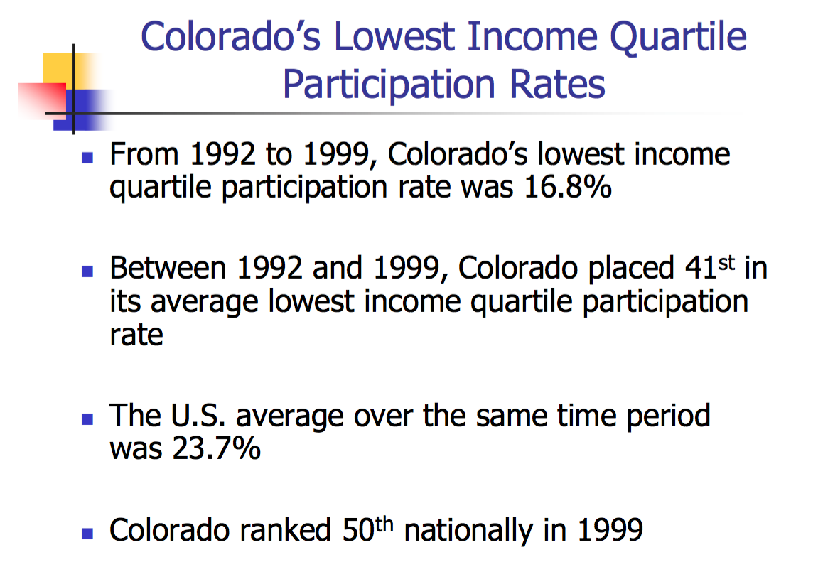 - What changes might increase participation of all Colorado's citizens in higher education;
