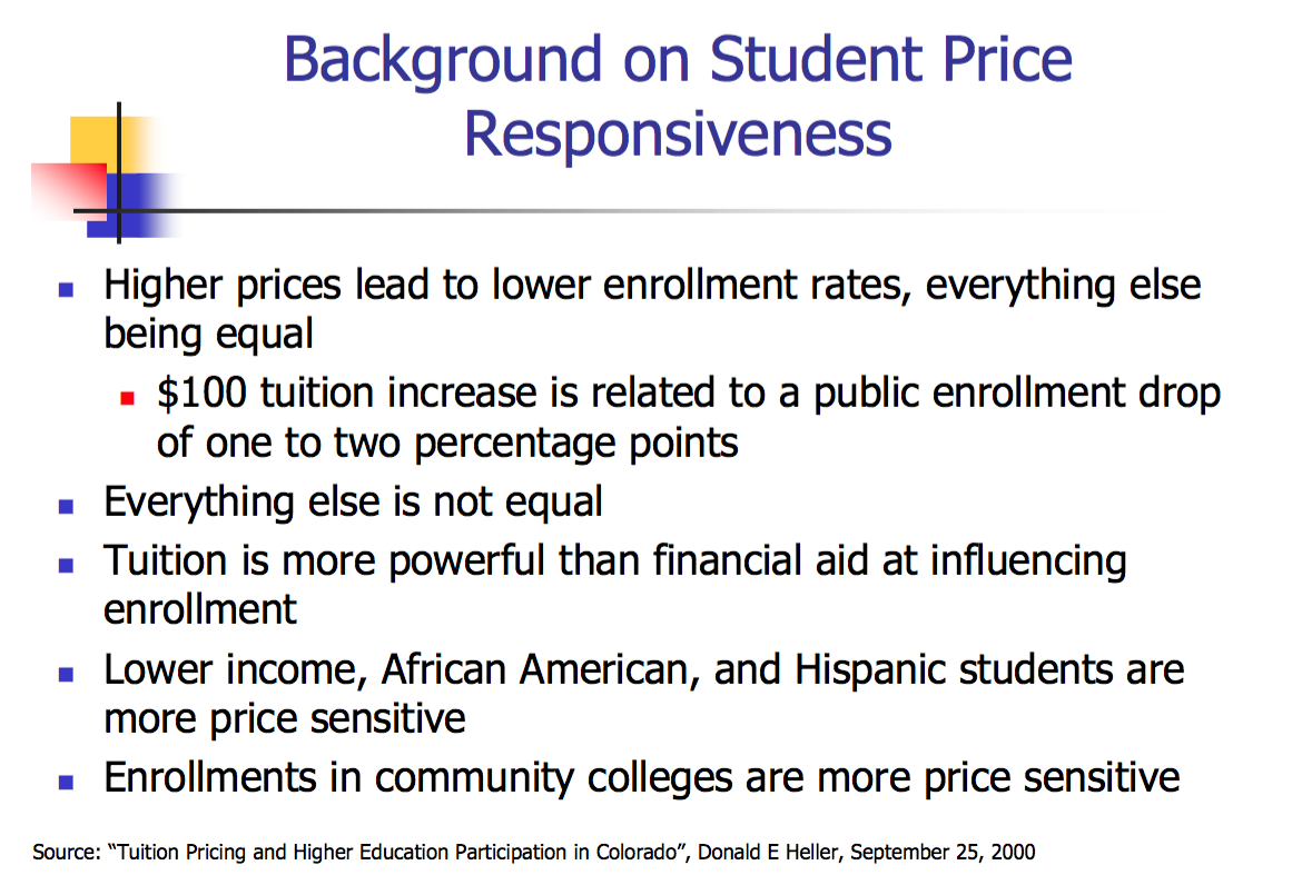 - State financial aid will likely increase to four-year institutions as a result of the net price decrease to two-year institutions""