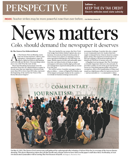 The News matters cover story is a version of the online editorial As vultures circle, The Denver Post must be saved