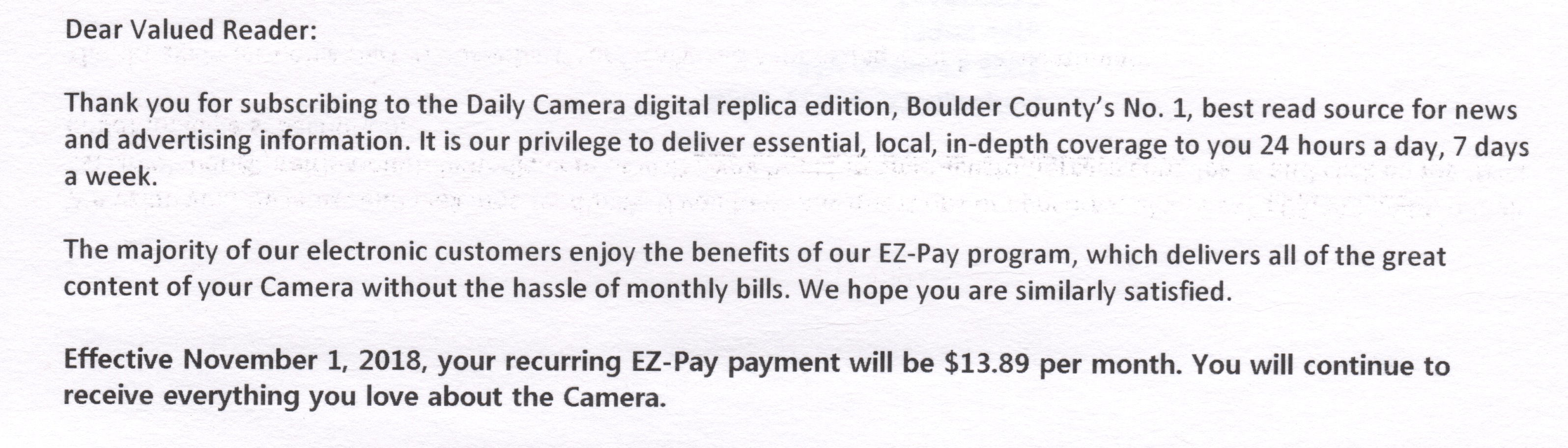 [On April 6, 2018, a number of op-eds appeared on the Denver Post website regarding the owners of the Denver Post and their journalistic policies. The lead op-ed, written by the Denver Post Editorial Board, was titled As vultures circle, The Denver Post must be saved.]