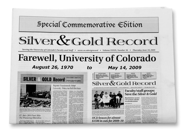 * WHEREAS, the Silver & Gold Record was founded in 1970 by CU faculty leaders, joined soon after by staff leaders, to communicate with their colleagues and the administration in a public university environment that values academic freedom, open debate, dialogue and free exchange in a marketplace of ideas; and