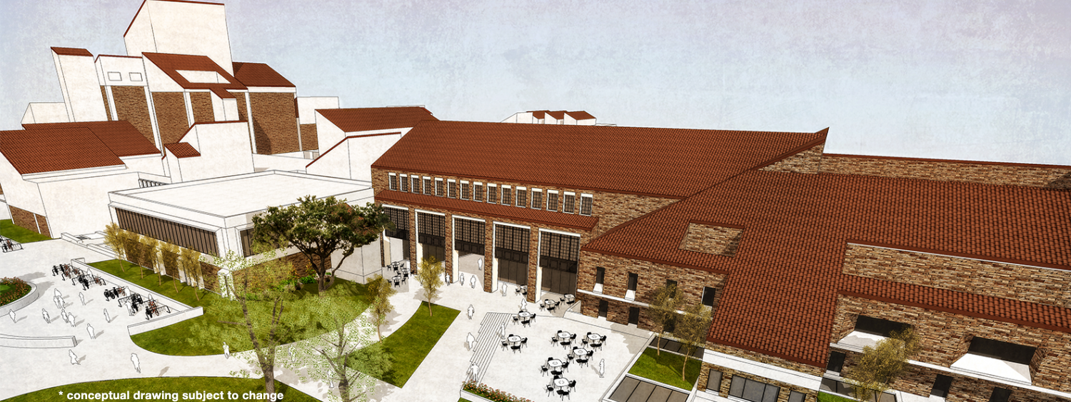 The building on the left, depicted mostly in white, is the existing Engineering Center.